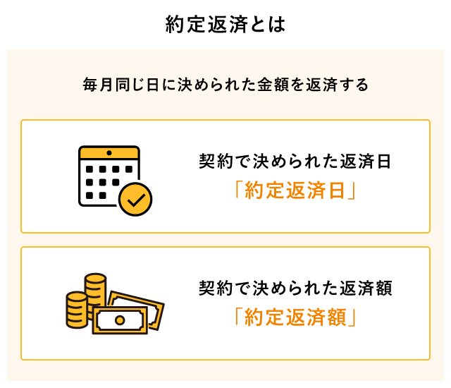 約定返済は、契約時に定められた日付・金額で毎月自動的に行われる返済です。基本的に利用者が毎月行うべき返済義務であり、支払いを怠ると延滞扱いになります。