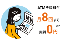 - ※1スターワン口座をご利用のお客さまは、ゆうちょ銀行やセブン銀行などの提携金融機関ATM手数料が、合計月8回まで実質無料です。ご利用可能なATMについてはこちらをご覧ください。(リンク先は日本語のみのご案内です)
