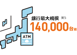 - ※5当行提携ATMであるMICS提携銀行、セブン銀行、ゆうちょ銀行のATM設置台数から算出。