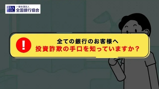 全国銀行協会では、SNS型投資詐欺や口座売買等の防止に向けた啓発動画を発出しています。